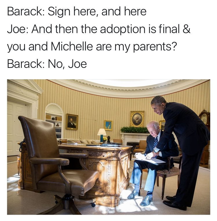 Here below we honor him with 10 greatest memes of his and Barack Obama’s time in Office.