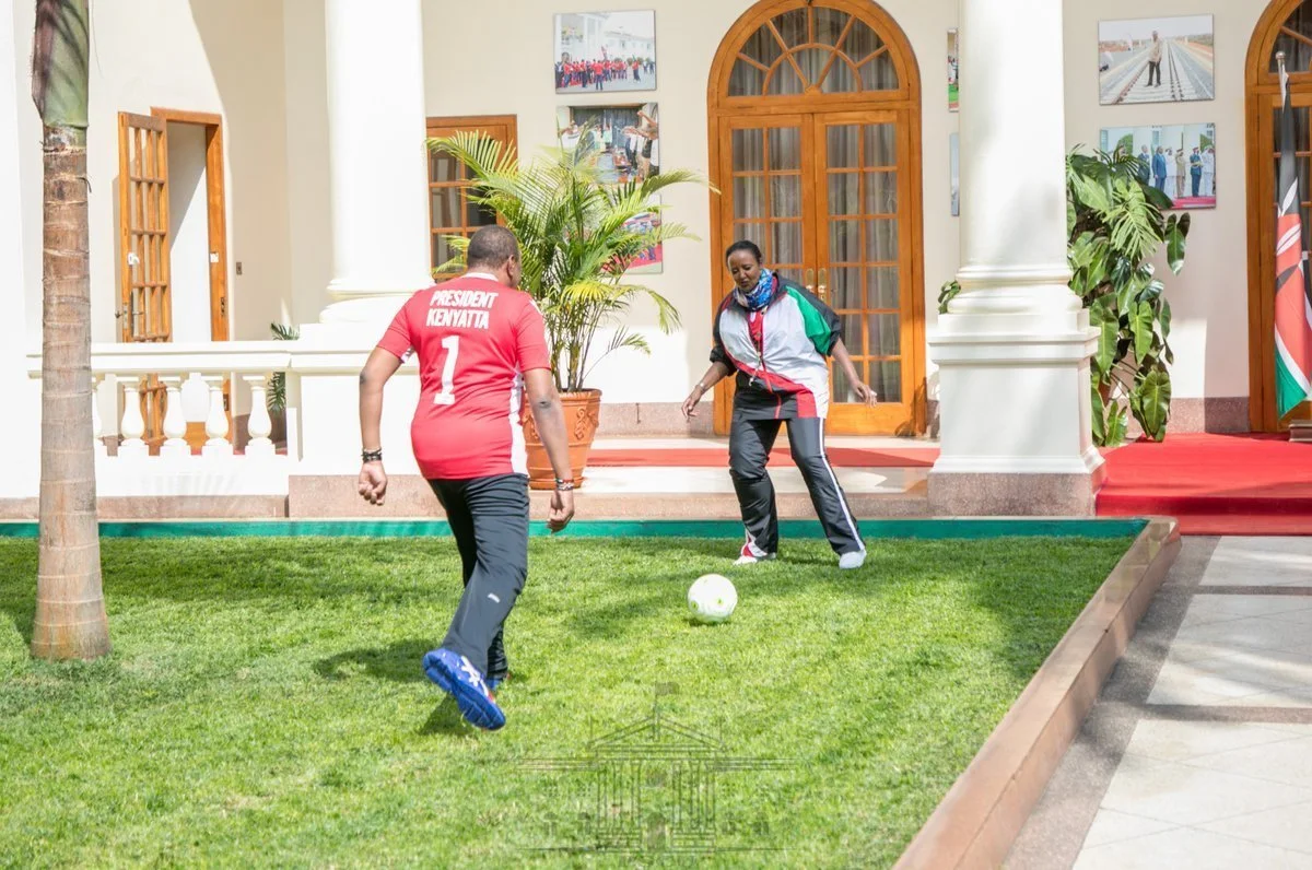 The president has not been seen in public for quite awhile and the shairing of his 2017 photo showing him playing football with the Cabinet Secretary for Sports Ambassador Amina Mohamed has invited comical reactions from Kenyans online.
