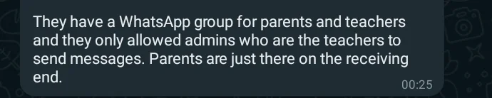 “They have a WhatsApp group for parents and teachers and they only allowed admins who are the teachers to send messages.
