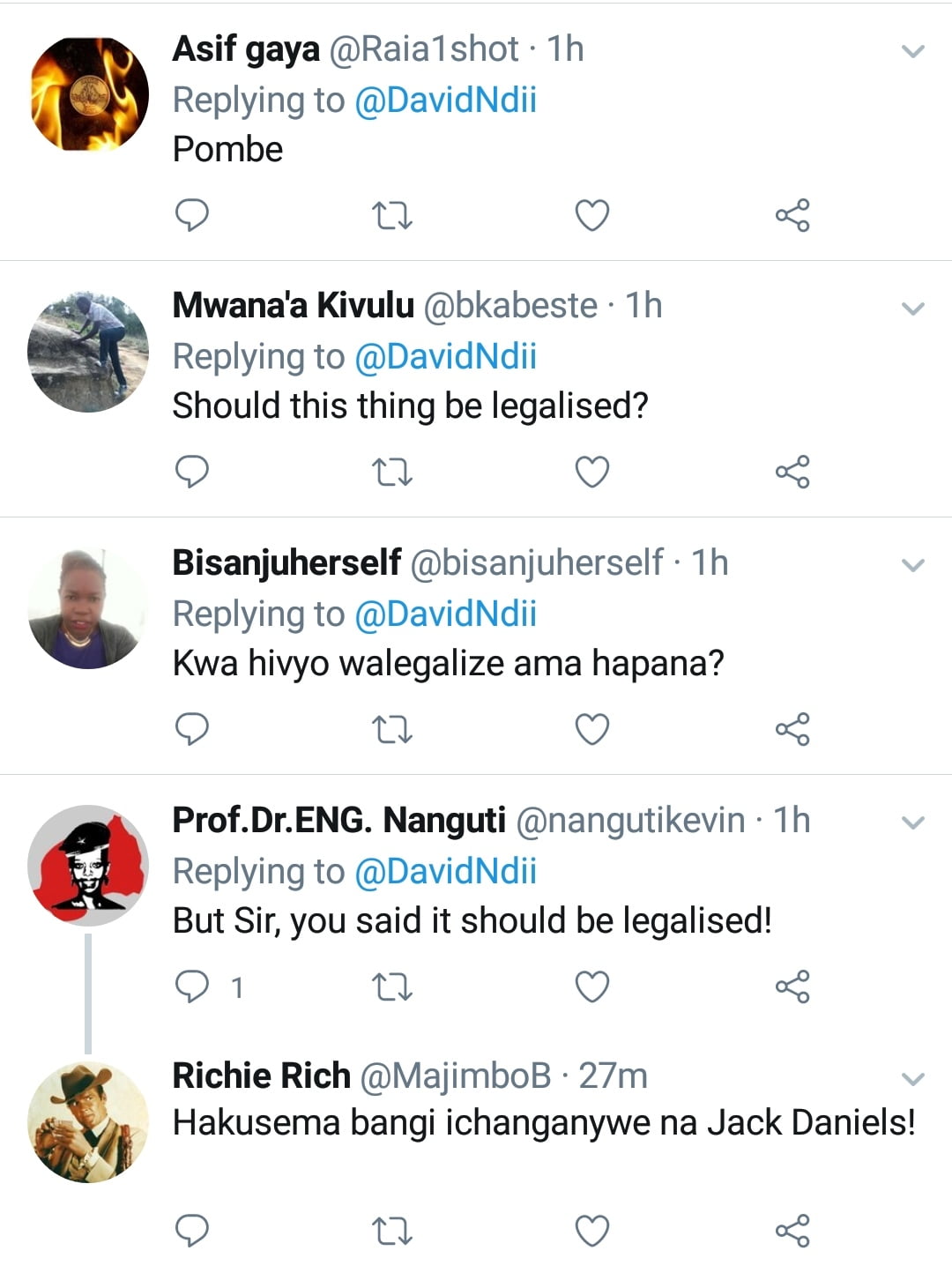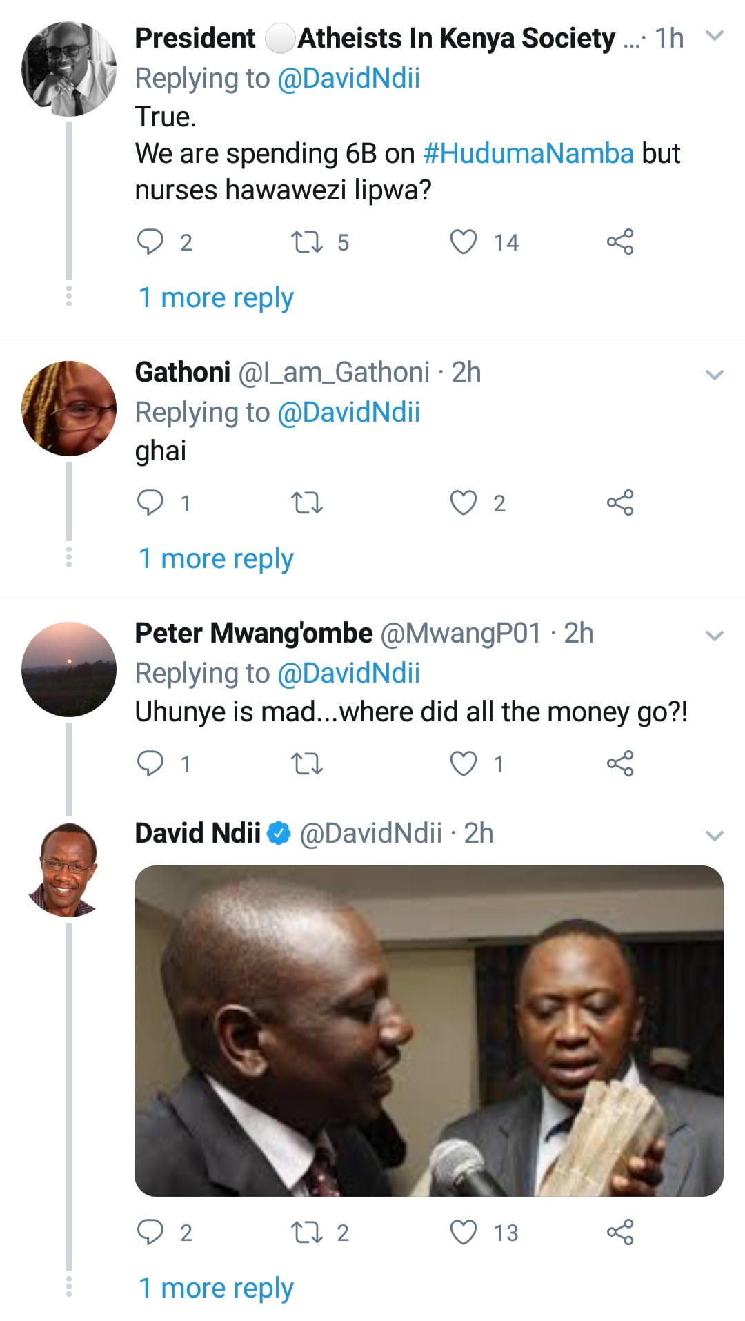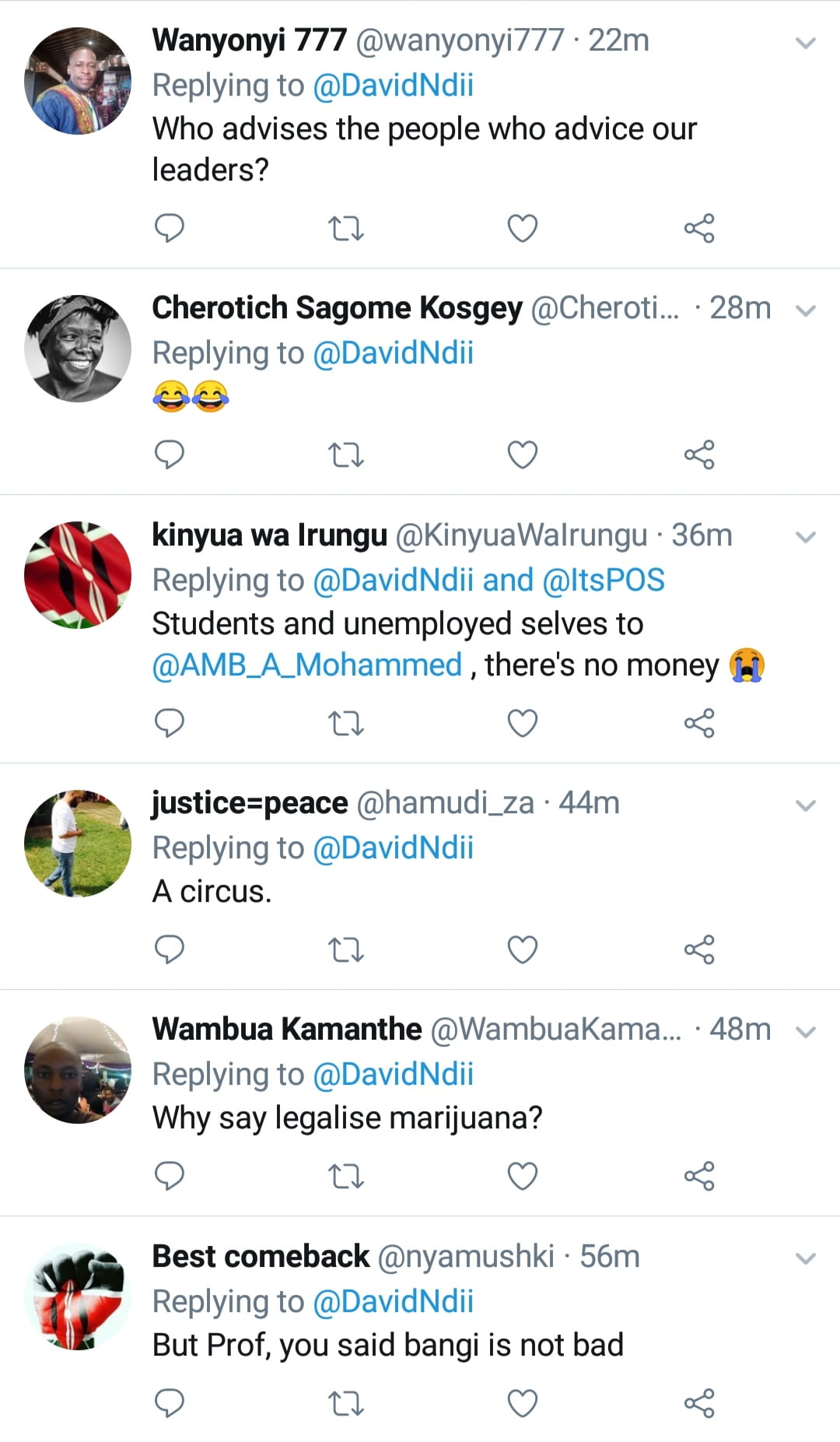 In a response to Uhuru’s latest remarks, world renowned economist and public intellectual Dr David Ndii, through his Twitter handle, simply quoted Kenyan news source Daily Nation’s tweet and said “Bangi”.