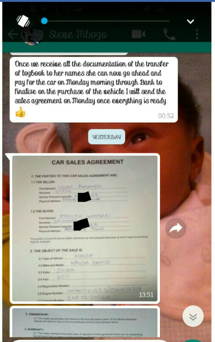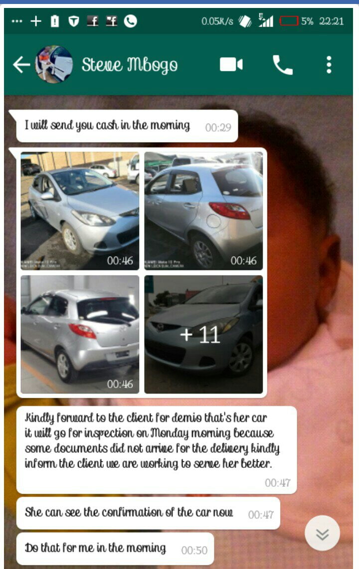 After sharing pictures of a Mazda Demio and having conversations on the matter, we trusted him and my aunt sent him money.