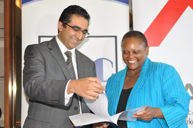 ABC Bank Group Managing Director, Shamaz Savani with EAX Board Chair, Dr. Jendayi Frazer