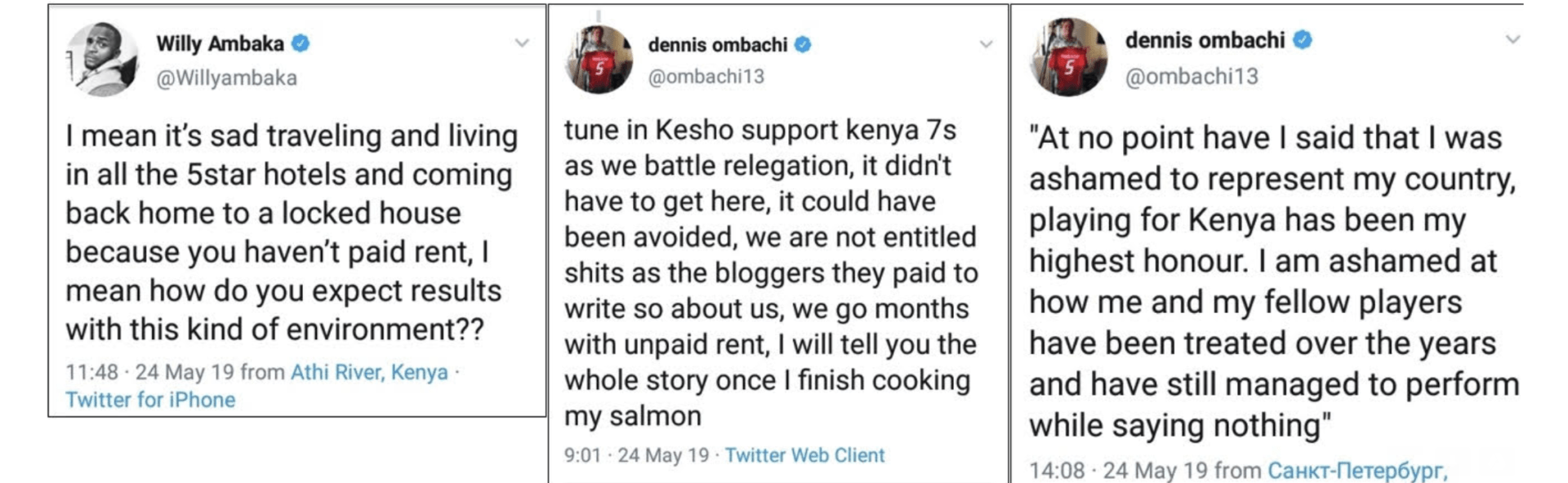 It has been several months of relative silence within the Rugby fraternity, broken only yesterday by a series of well-choreographed tweets by two former senior players of the Kenya 7s Rugby National team.