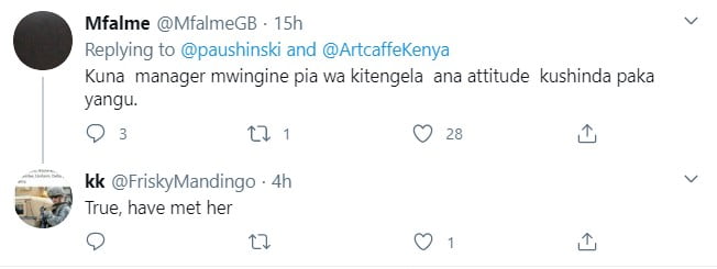 “Kuna manager mwingine pia wa Kitengela ana attitude kushinda paka yangu,” claimed a social media user.