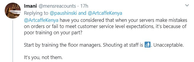 “Start by training the floor managers, shouting at staff is unacceptable,” noted another unhappy Kenyan.