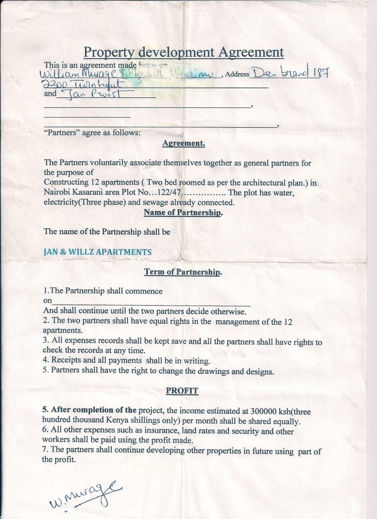 There was not enough space for 12 apartments, so we were forced to build just 8 units. In the new apartment block, I could live in 1 apartment and William Murage and his family in another apartment