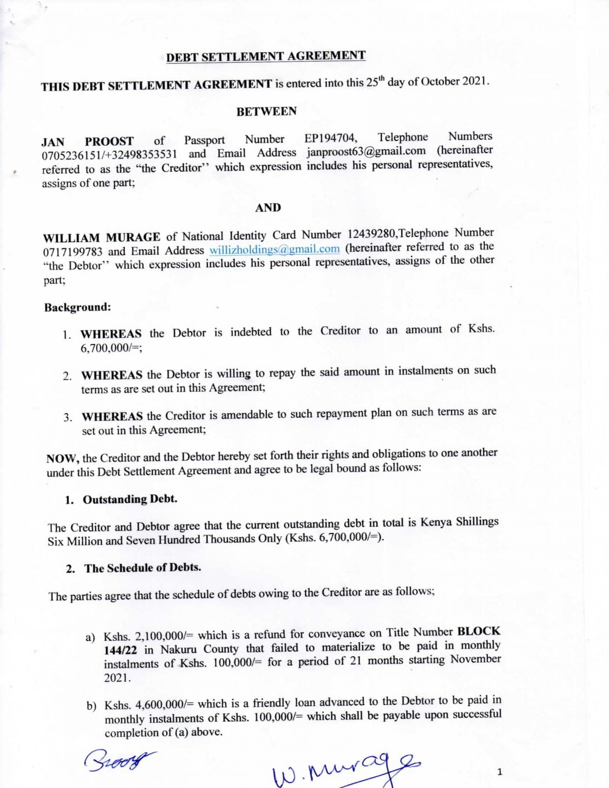 After his announcement of the split, early 2020, I asked about his proposal for reasonable and realistic repayment plan. Then I provided him with my own proposal for his opinion. He refused to respond to any mail or other requests from myself or my lawyers until 2021. It’s better to sit down together and count what I owe you, was his reply at the few times he called me. So I went to Kenya, but once I was there he cancelled weekly every meeting proposed by himself, until my visa was almost expired. He even pretended, he organized a meeting with people from Equity and both of us, while he was in Belgium with his family.