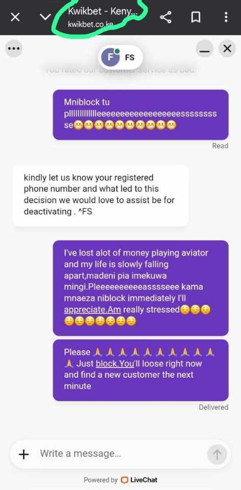 “Hello Cyprian. Kuna hii site inajiita KwikBet, man, haina hata option ya ku-delete account kabisa ukitaka quit betting ka sites zingine. Ukiwaambia uwatumie details zako, wanakwambia give them 3 months ndipo account iblockiwe. Before 3 months utajipata tena unabet unapoteza pesa. I started by requesting for account deletion last year through their WhatsApp number. I tried requesting this to happen on several occasions. As you can see, I even rated their customer care as poor coz I texted them on WhatsApp like 2 weeks na hawajaingia online ady sahizi. Kuna time wantuekea bots zicheze in order to fool us. Limit yao ya maximum bet unaeza eka ni 10k, lakini tunaoneshwa ety kuna players wanacheza na more than 10k. Wengine ety wanacheza ety ady na 40k, 30k. Kindly expose this utuokoe!”