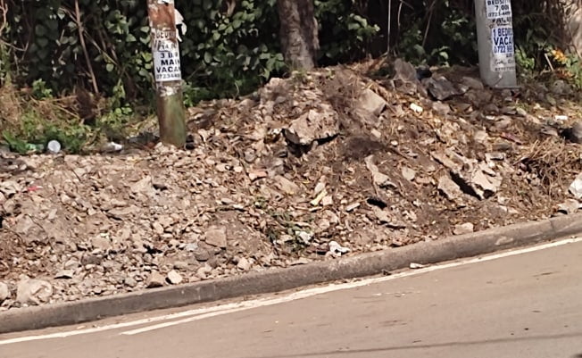 Although the road is well done with good sidewalks and clear painting, the overall complete image is dampened by the eyesore of debris mounds all over the roadsides.