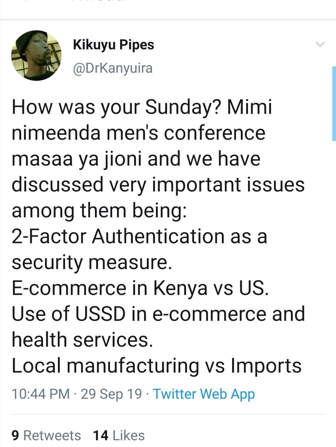 Kenyans on Social media a few months ago joked about a men only conference. Well, it became a reality in Eldoret and as a boychild president, I must recognize.