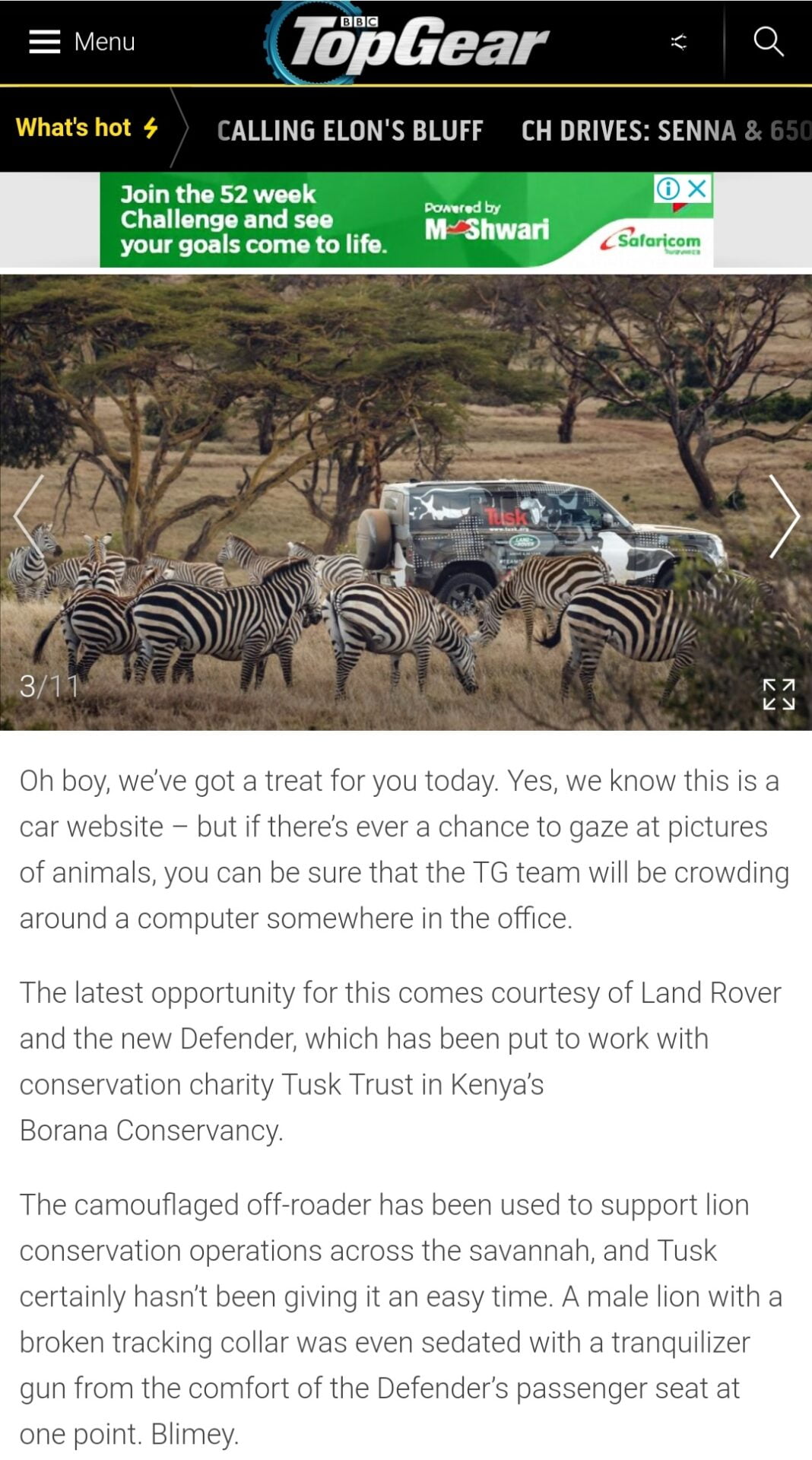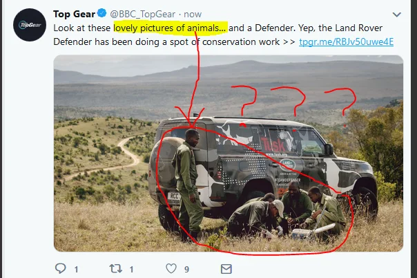 Attached to the tweet was a photo of a group of Kenyan conservationists posing next to a Land Rover defender inside the Borana Conservancy, with the caption; “Look at these lovely pictures of animals… and a Defender.”