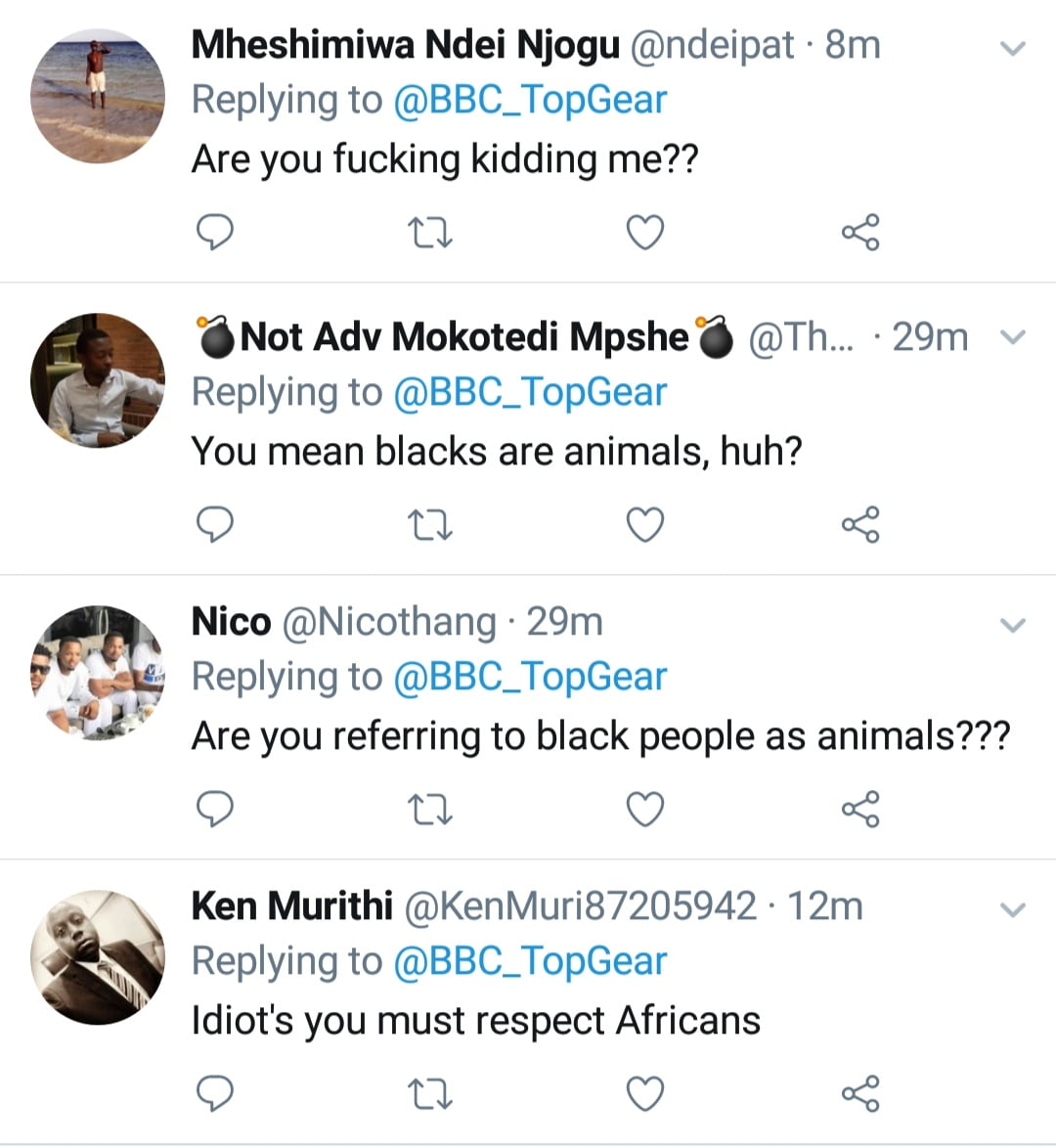 This afternoon, fast-paced and stunt-filled British motor show Top Gear landed in trouble with a section of the online community after their social media handler made an extremely controversial tweet which a few people saw as racist.