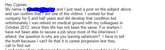 As I forward the medical reports of the 16 Plus safaricom employees who were illegally laid off after suffering from Acoustic Shock Syndrome, I see it necessary to give some info about this rare condition that was promoted by Safaricom's cheap headphones . Here is what I have found online