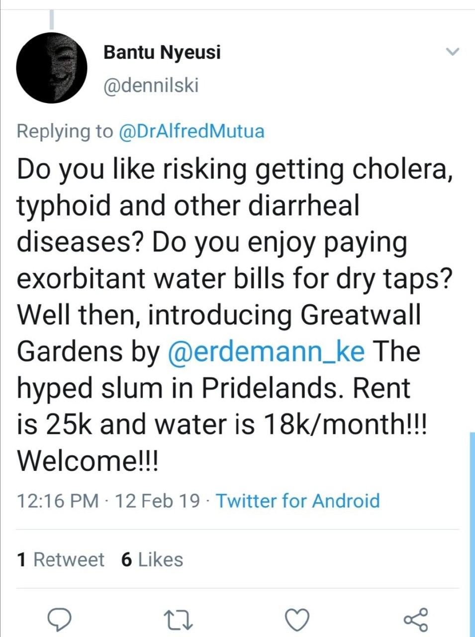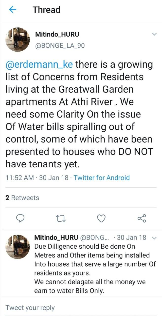 Water from a tap in Greatwall gardens athi river pic.twitter.com/Q7u3LM2MPB