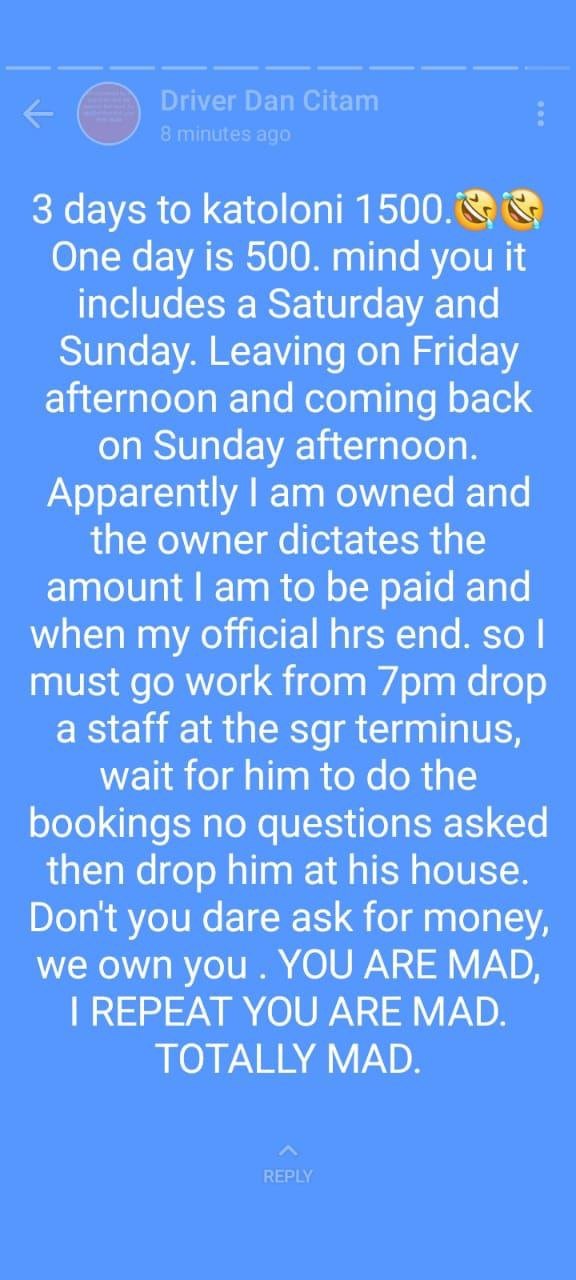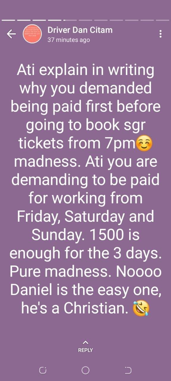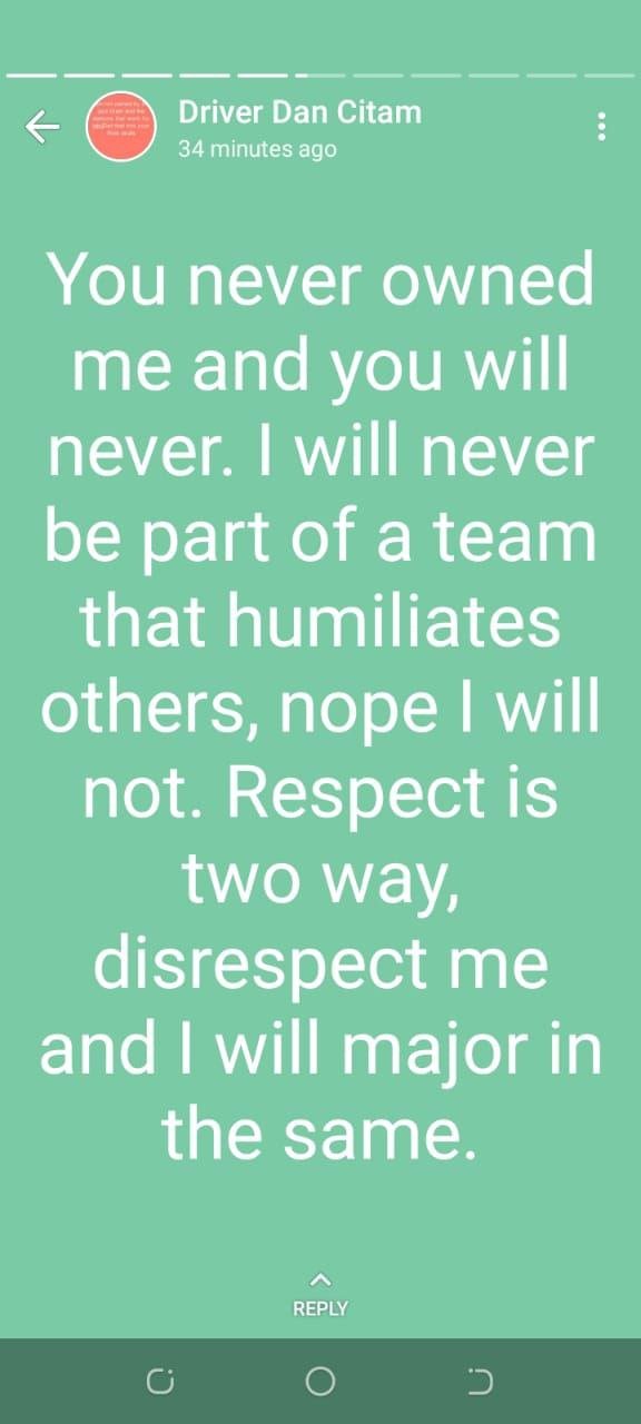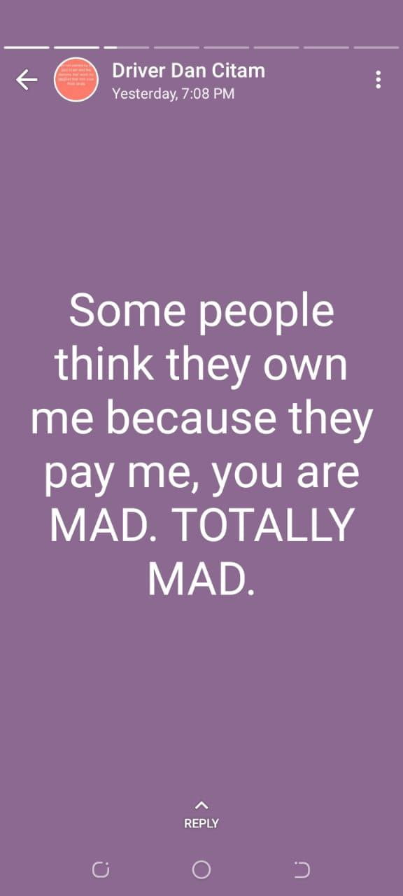 Through a long string of monologues published on his WhatsApp Status, the victim gave a written account of the painful daily ordeals he has to bear in order to sustain his poorly-paying job.