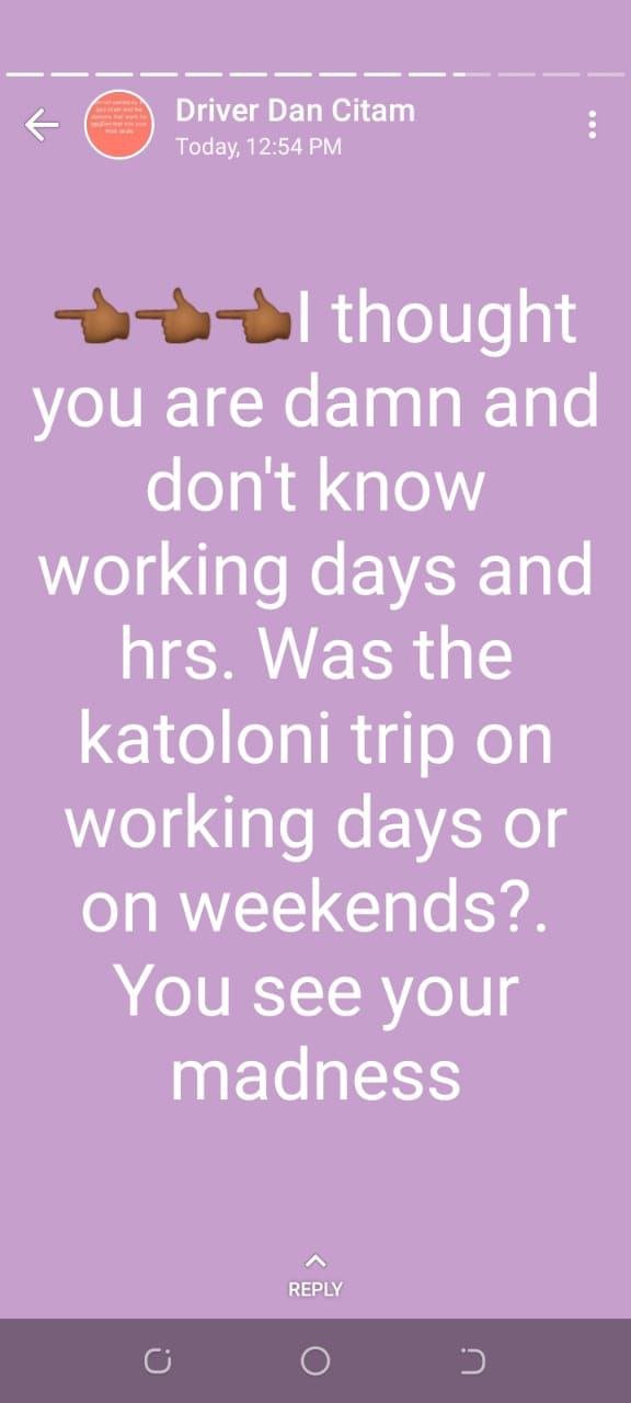 During the incident that shook the entire CITAM religious community last week, an infuriated driver came forward to vigorously protest unbearable working conditions perpetrated by the school’s rogue principal.