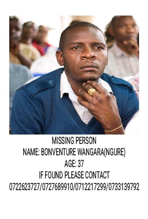 Inspekta Mwala actor Bonventure Wangara has been reported missing.