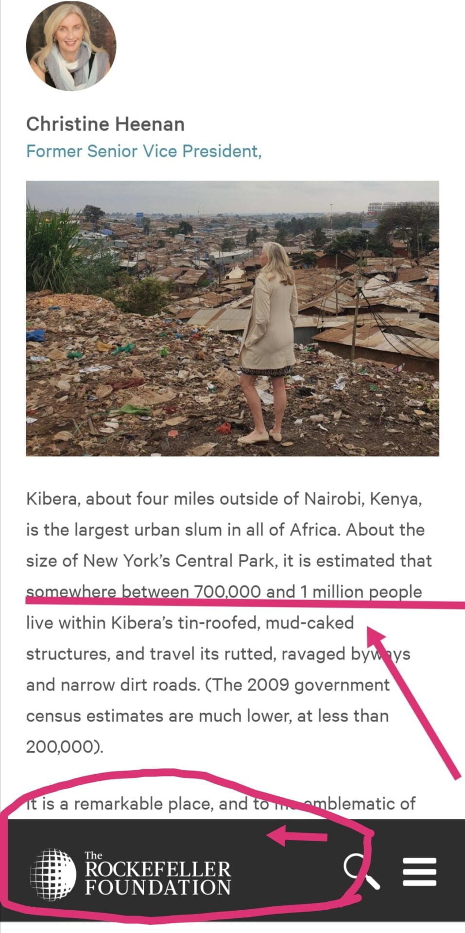A fine urban development person lost her job because of greed by povertypreneurs UNHABITAT, supported by other donors such as World Bank and some other UN agency. In short, the United Nations were willing to live by the lie that Kibra/Kibera harbored Millions of people so that they can continue pushing the narrative and pocket fat perdiems while conducting programmes in that slum.