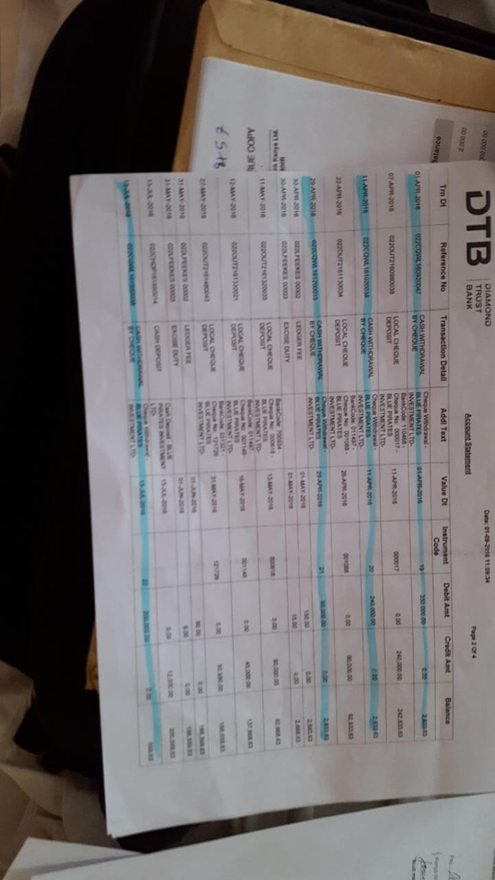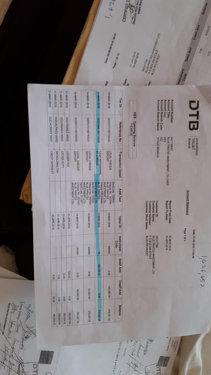 I opened a bank account with DTB Kitale branch 2014 together with my partner who you will see his details on the letter to Central Bank.