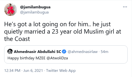 She was responding to another tweet by city lawyer Ahmednasir Abdullahi who had wished his frenemy Atwoli a happy birthday.