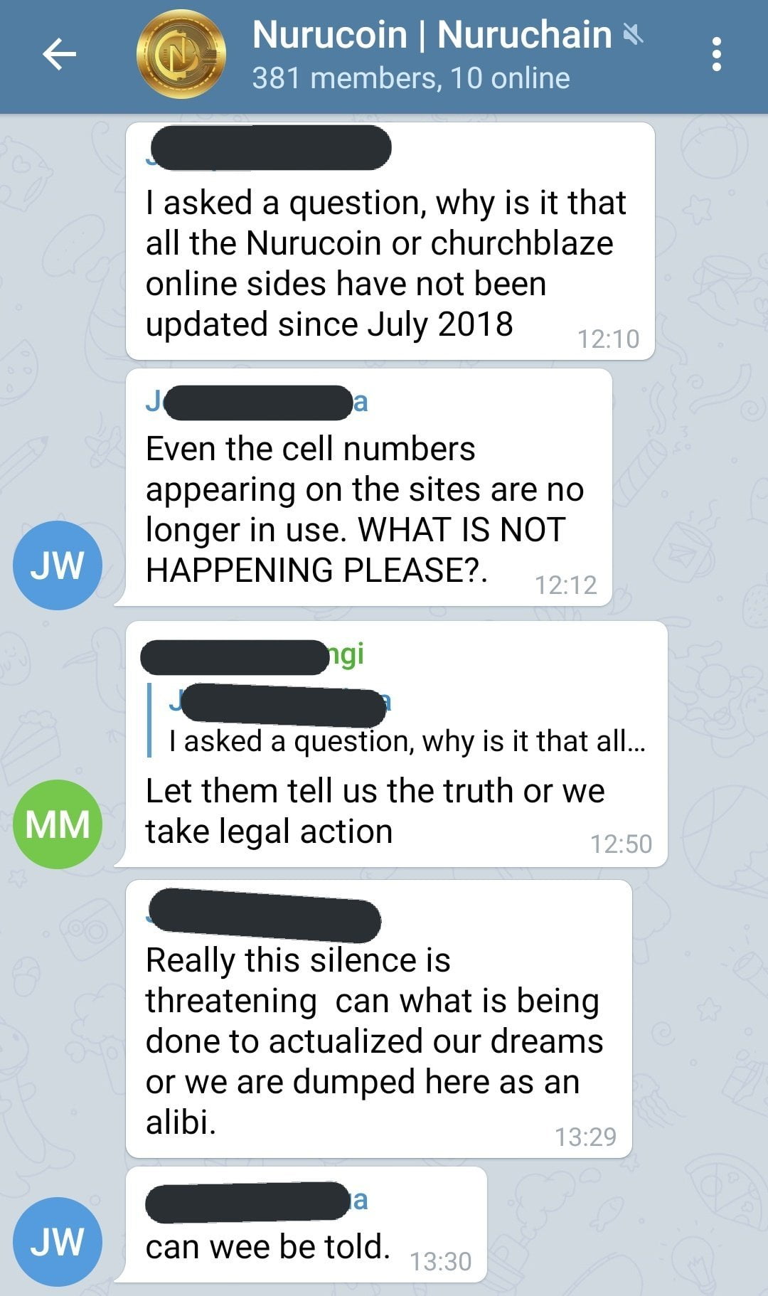 Here are some screenshots from the Nurucoin, which is believed to be having issues. Clients might have been scammed.