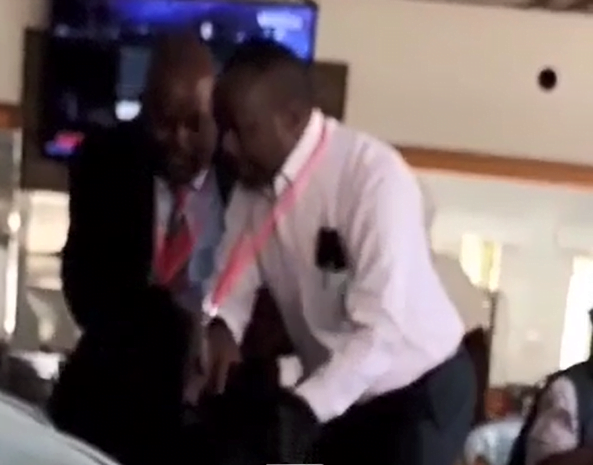 PHOTO CAPTION: A snippet from a circulating video clip that shows two CUEA staff members assaulting a helpless student