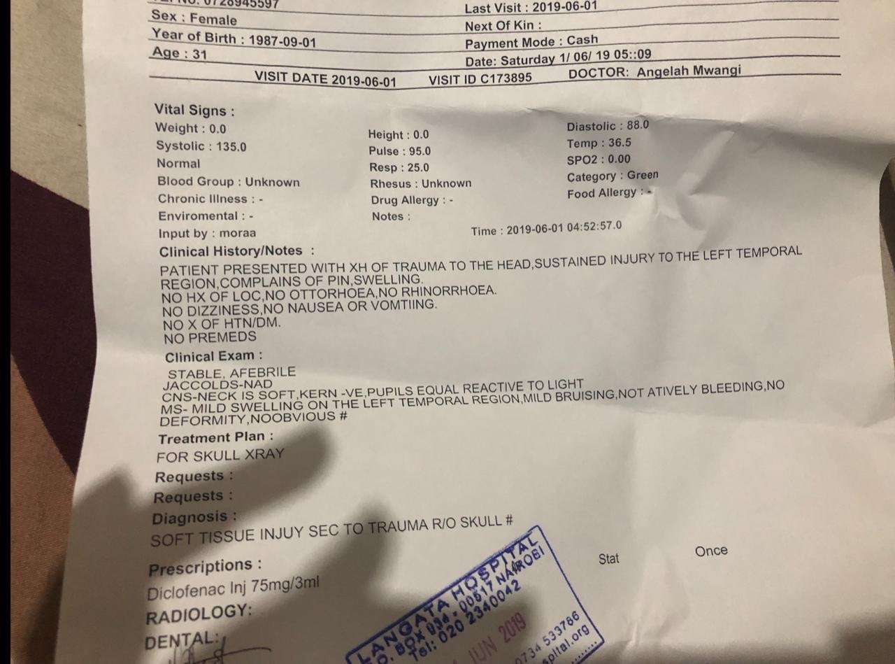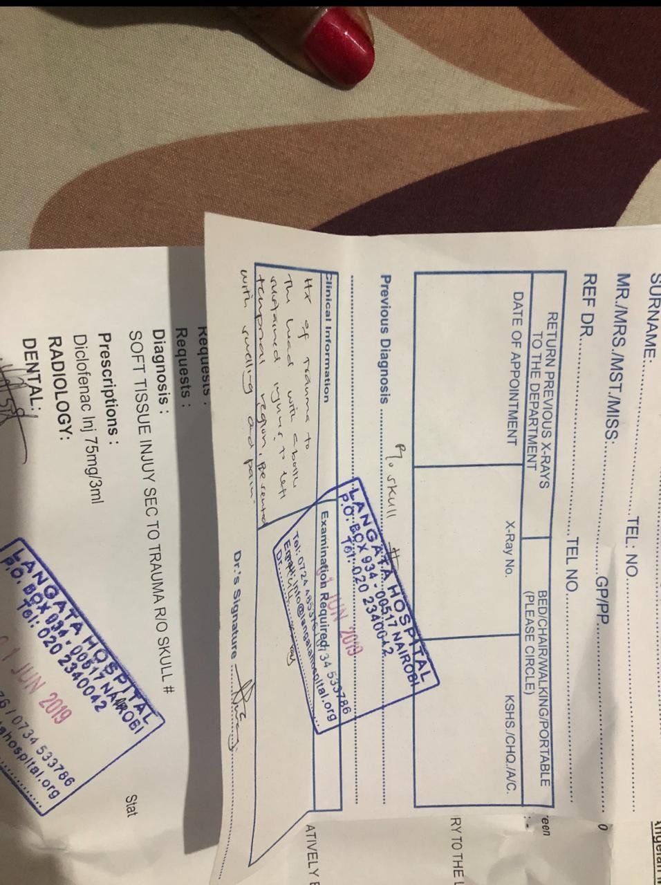 We asked him how and he became so rude to us. So we decided to Langata Police Station and report and later to langata hospital.