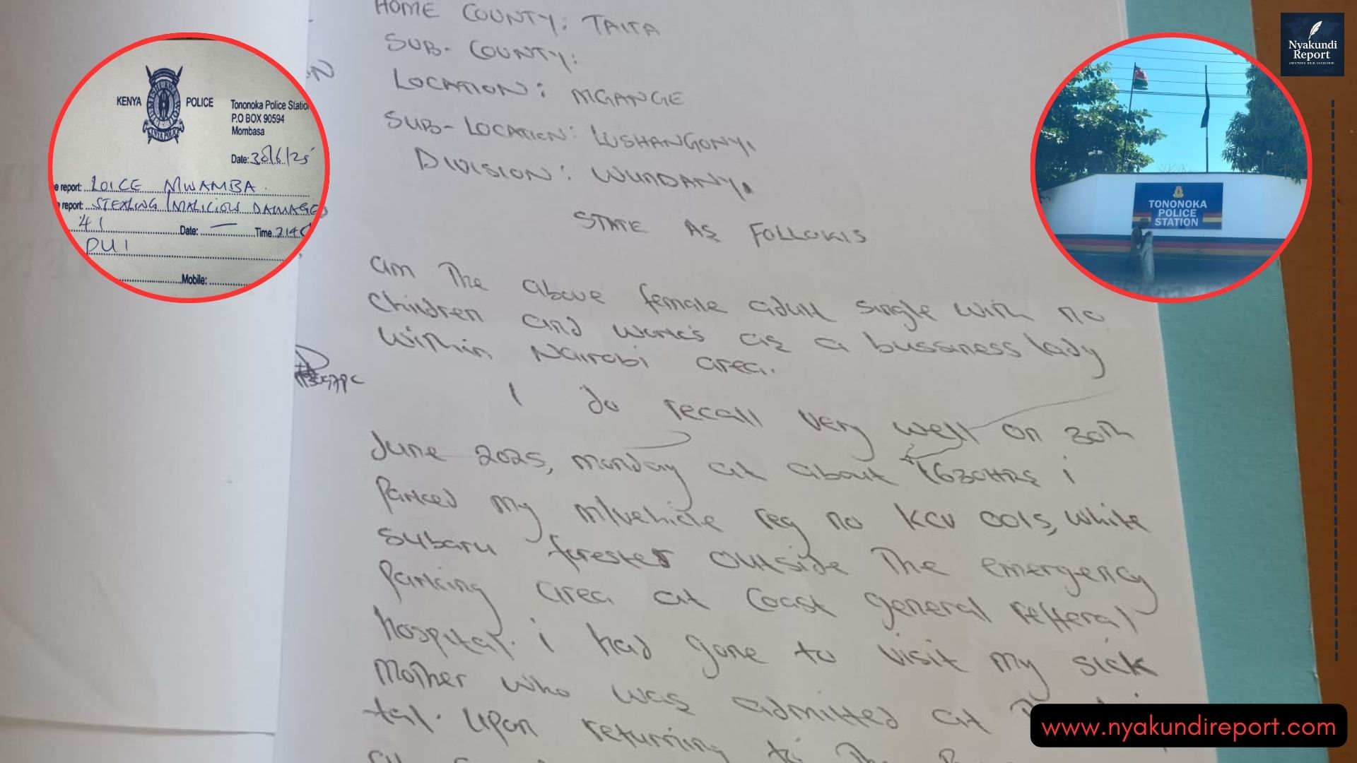 Hospital officials dismissed her concerns. They advised her to report the matter to police. She filed a report at Tononoka Police Station under OB number 41/30/6/2025 and later recorded a detailed statement.
