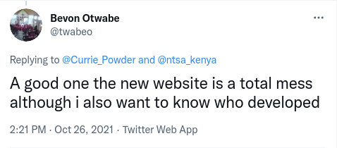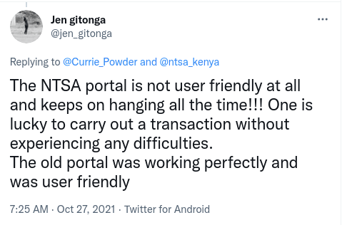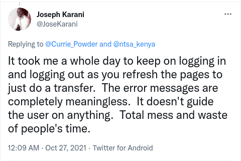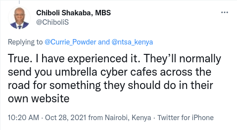 It all began on Wednesday, 27 October 2021, with a post from one Japhetha Waitina on Twitter who expressed his frustrations when trying to manoeuvre through NTSA’s online portal.