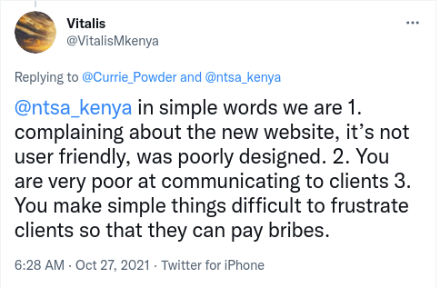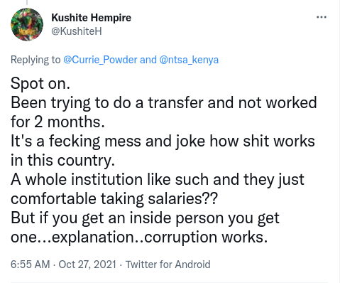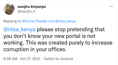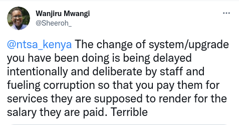 The frustrated Kenyans are then forced to reach out to NTSA officials and bribe them for the same services that should be easily accessible on the website.