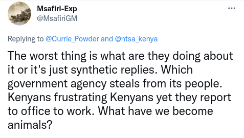 Like one netizen noted, NTSA’s social media team’s response to some of the complaints was equally annoying if not worse.