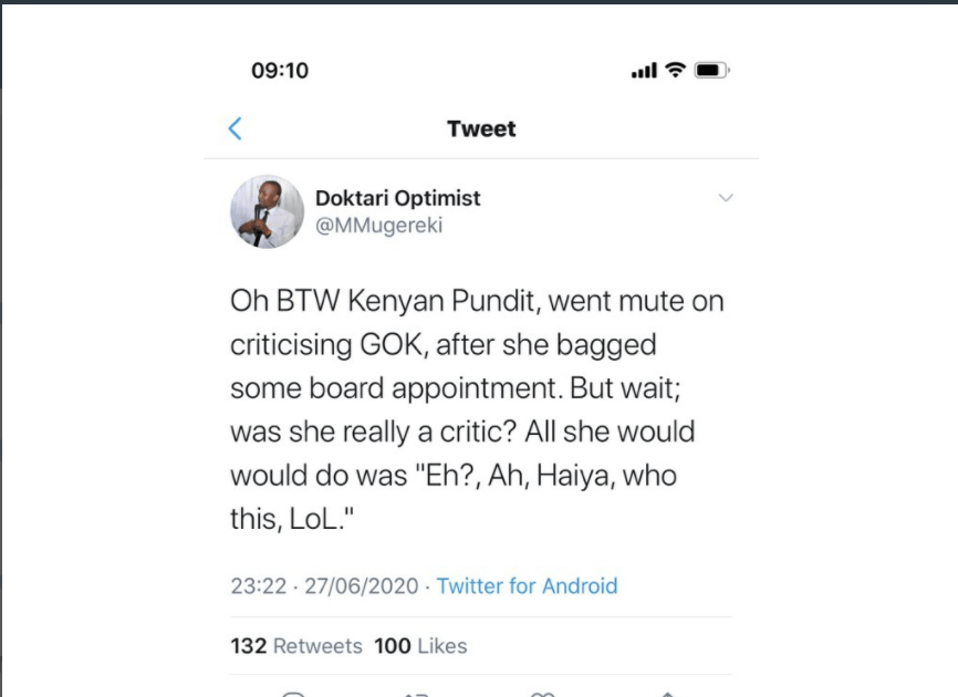 In 2016, Cyprian Nyakundi warned about government informants who are double agents. The editor of this site also put Ory Okolloh under the spotlight during the #SwitchOffKPLC campaign and revealed that she was not talking about the issue because her husband is a senior advisor in the ministry of energy.
