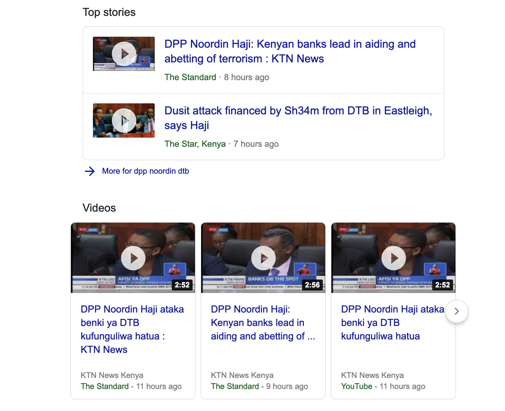It is important to note that the Nation Media Group, DTB’s sister company, was not enthusiastic in reporting the unfolding story about DTB as seen in our google search.