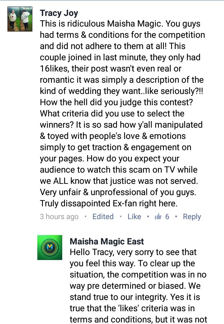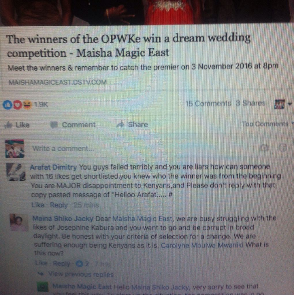 Today, I received an email shaming DSTV's Maisha Magic East, for their corruption on their #opwke competition. They had a winner already and used other fans for content purposes. The winners were fixed and this is in their opinion that that was not a fair competition. The rules were that no contestant should work for them and number of likes on Facebook as entry-point to be shortlisted.