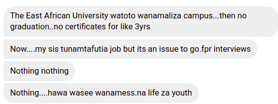 Speaking to this website anonymously, one affected party revealed that the ongoing circus has left many Bachelors Business Management graduates in deep frustration since they cannot even go for job interviews without their papers.