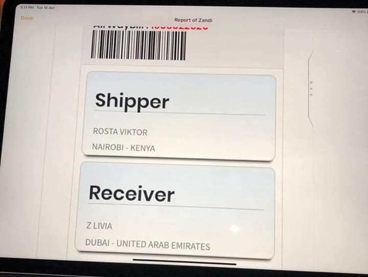11th February 2019 – Mr. Zandi is conned of $750,000 by Don Bosco Gichana at the cargo area of JK1A for the safe return of his goods. This request did not mature.