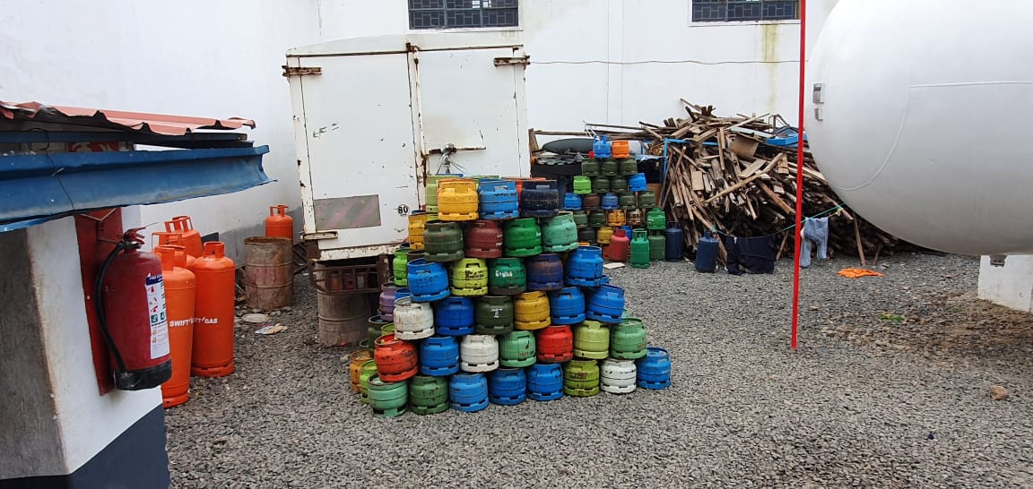 In the same month, a supermarket in Kawangware was found selling hundreds of rebranded cylinders belonging to various oil marketing companies in a raid that saw the owner of the store arrested and later released.