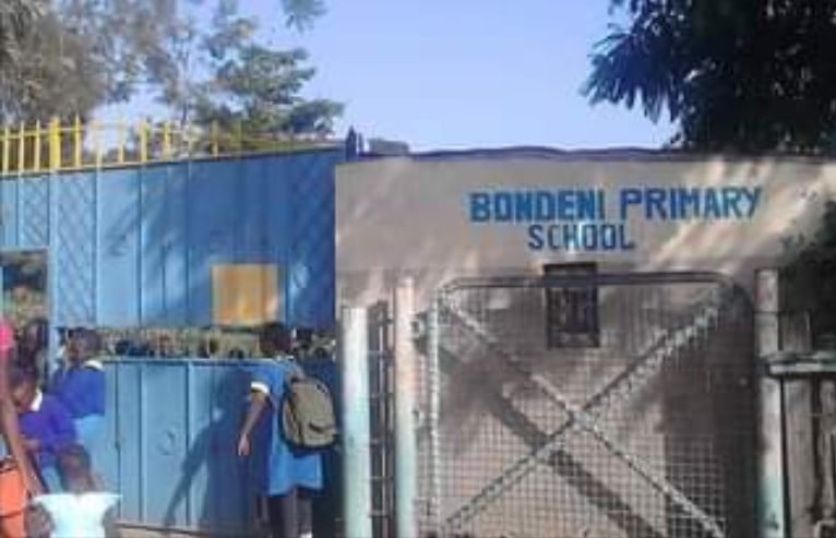 CAPTION: A view of Bondeni Primary School's main gate Enraged parents at Bondeni Primary School in Kayole have come out to protest what they term as blatant extortion perpetrated by the school's administration. The Headteacher at the learning institution has been accused of running a get-rich-quick scheme by demanding