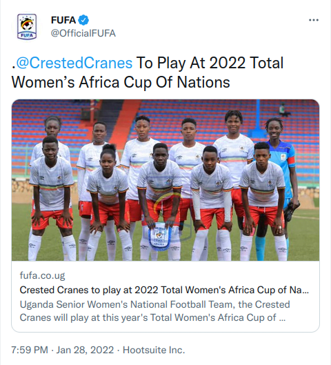 The latest unrest in the Kenyan football community was sparked by a controversial announcement by the Federation of Uganda Football Associations (FUFA) on Friday 28th January 2022 claiming that their women’s football team, The Crested Cranes, will be playing at this year’s edition of the Women’s Africa Cup of Nations (AWCON) following a purported withdrawal by Kenya.