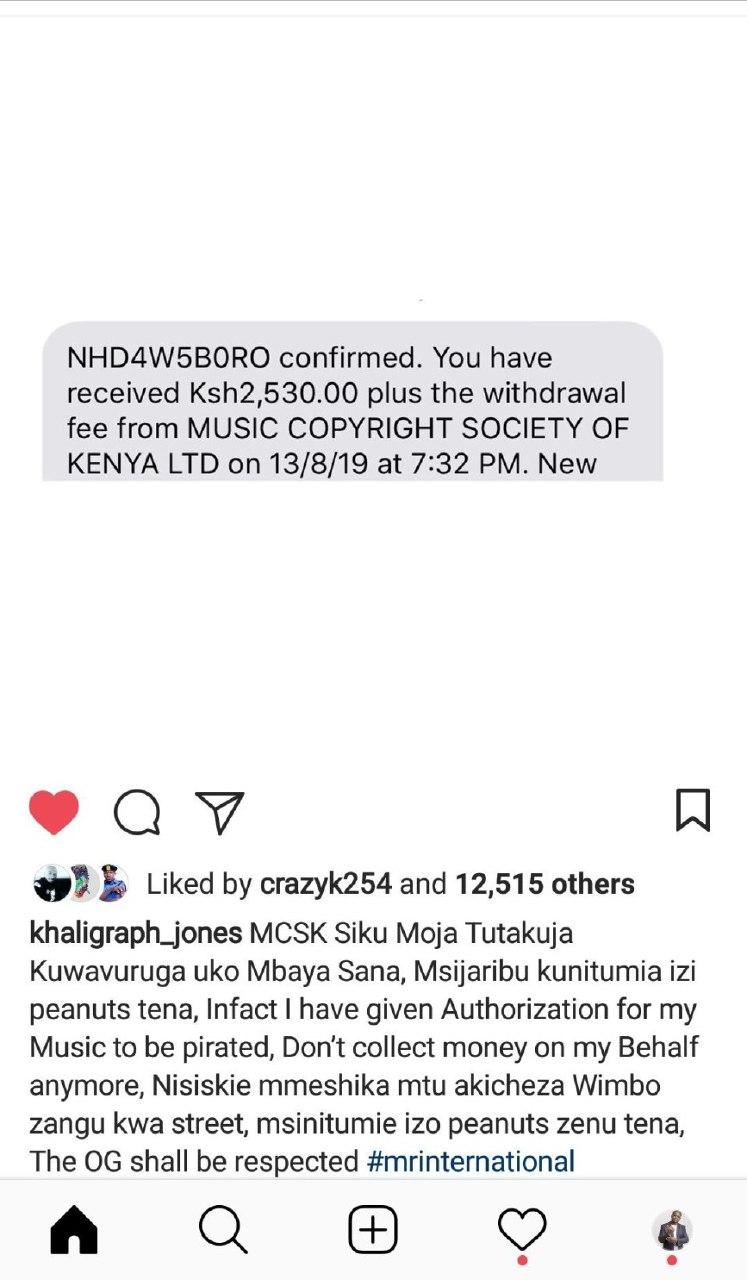 In August 2019, Kenyans woke to reports that MCSK had sent out an average of Sh2500 as royalty for the year to several Kenyan artistes.