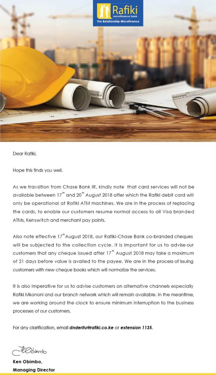 According to the internal document in our possession, Rafiki Microfinance customers should start getting worried. Duncan Kabui is also the Rafiki Microfinance Director.