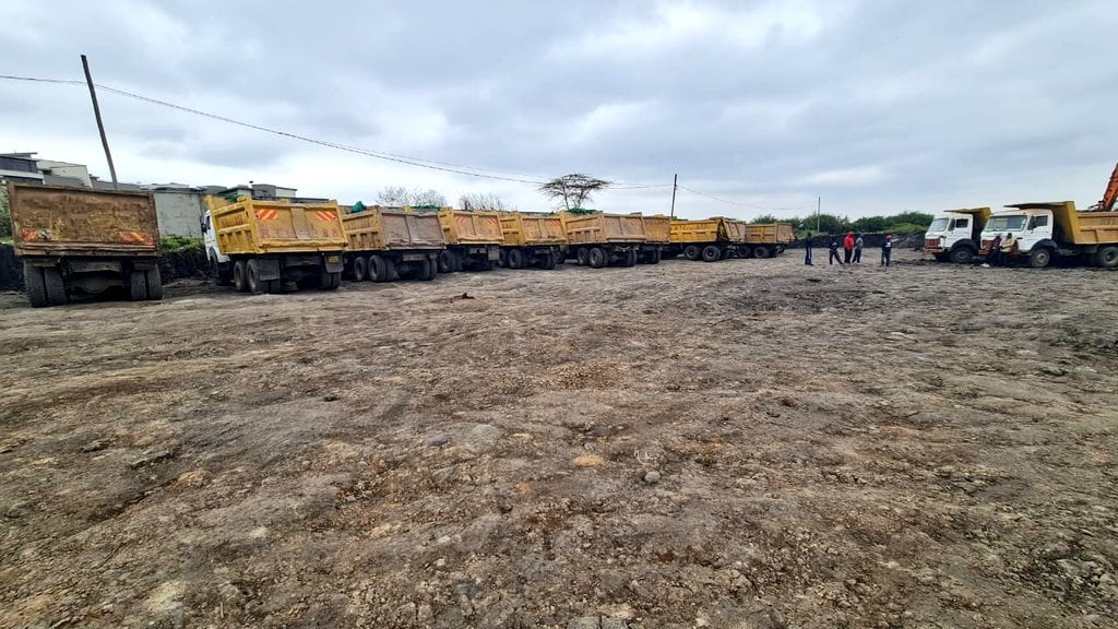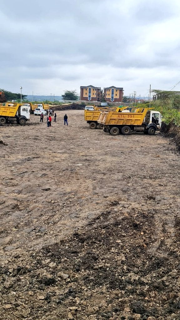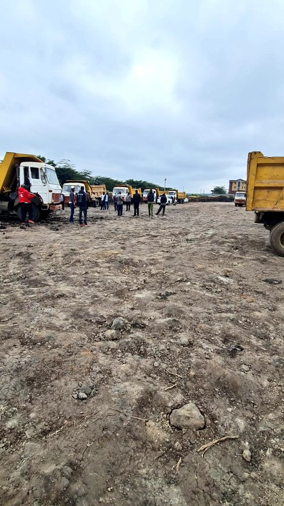 From the images shared by Mwangi, a convoy of construction trucks and a small group of workers can on the portion of land; a clear sign that the grabber intends to immediately begin to develop the tract.