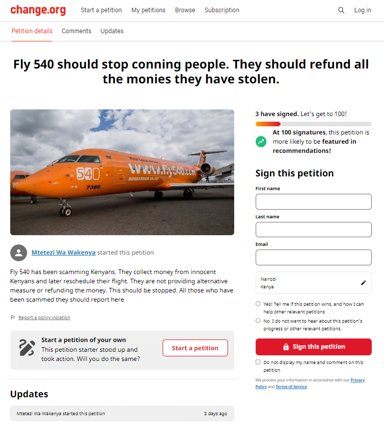A week ago, this blog amplified the voice of frustrated clients who exposed local aviation firm, Fly540, for running a fraudulent scheme to steal from Kenyans.