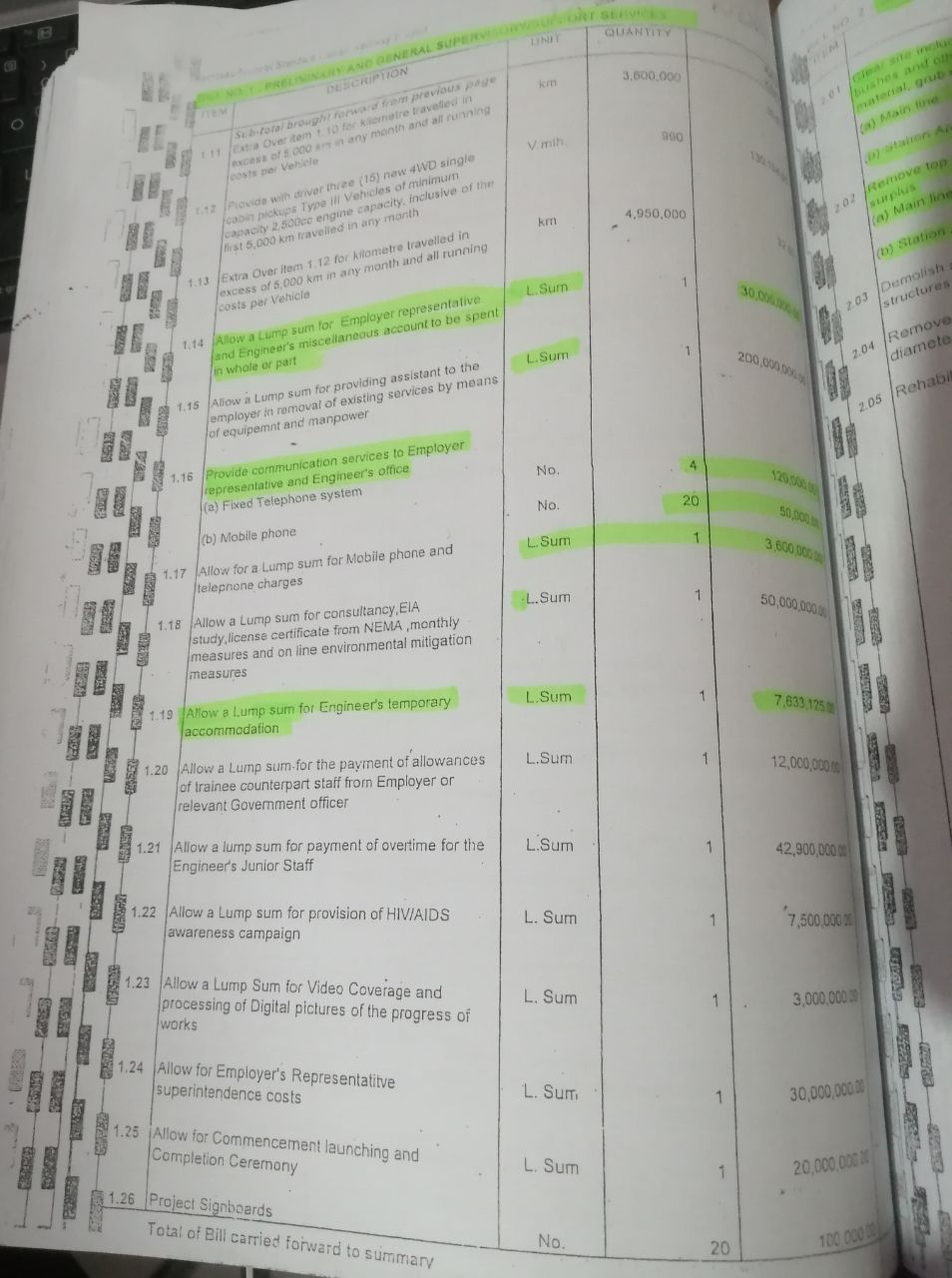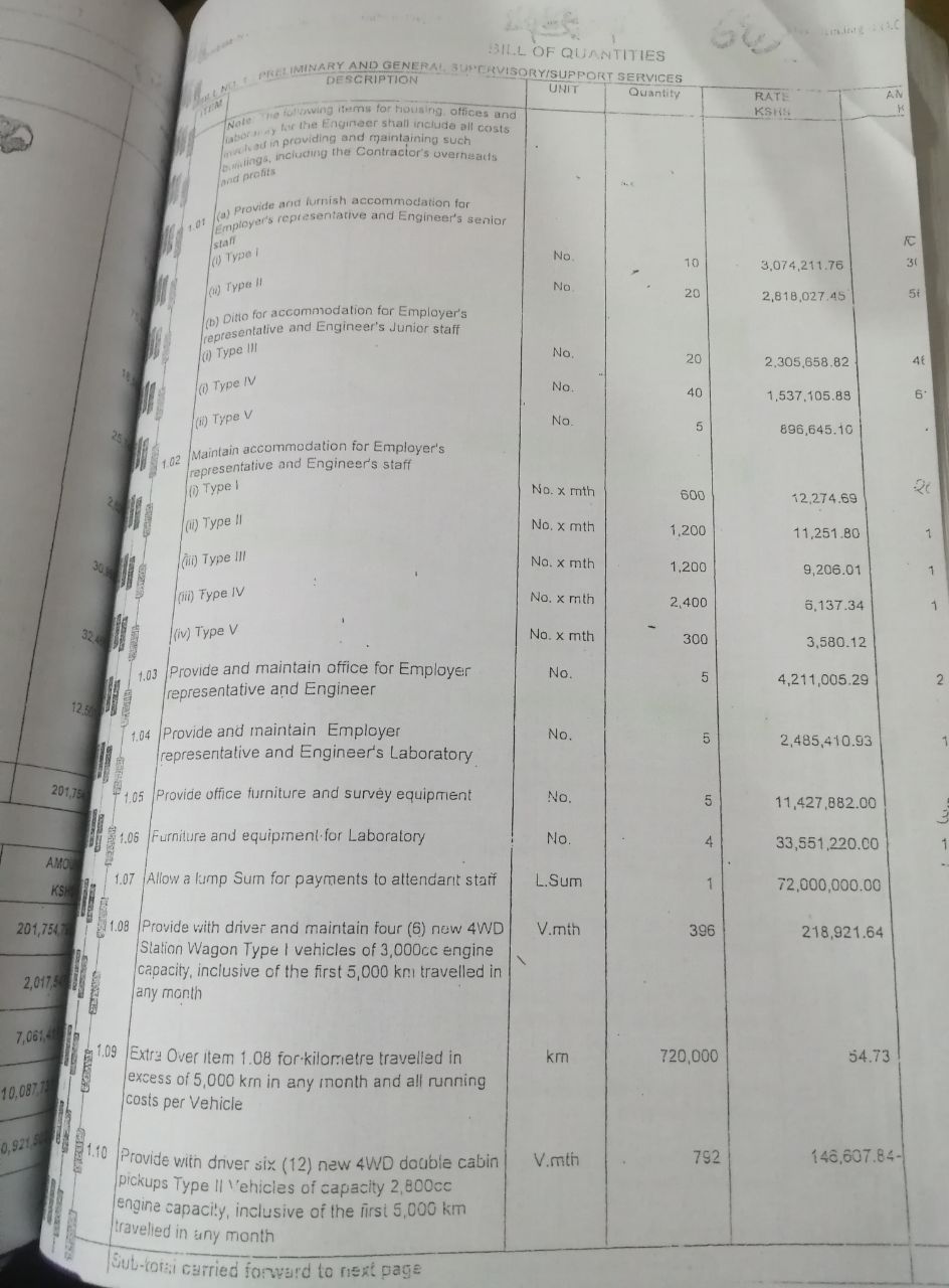 In the Earthworks section, the famous cost of the billon shilling grass emerges; the exact amount is actually Sh1,090,704,240.