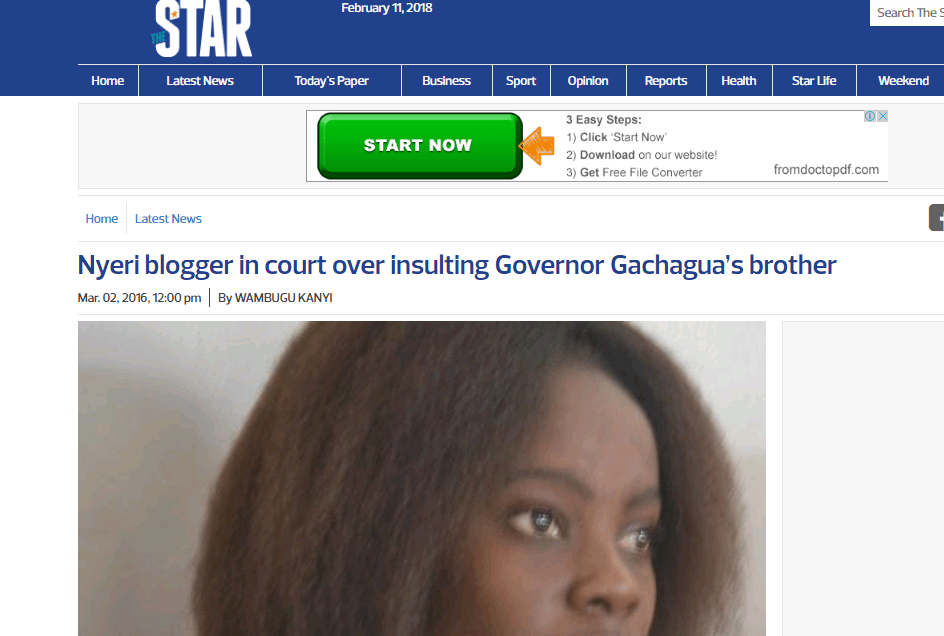 Caption: Karatina blogger Martha Wanjiru who was arrested in 2016 after Governor Nderitu Gachagua’s brother, Rigathi Gachagua colluded with CID . Gachagua has bribed MPs and he is the force behind the Computer and Cyber Crime Bill meant to return Kenya to the dark days when Kenyans freedom of expression was limited.