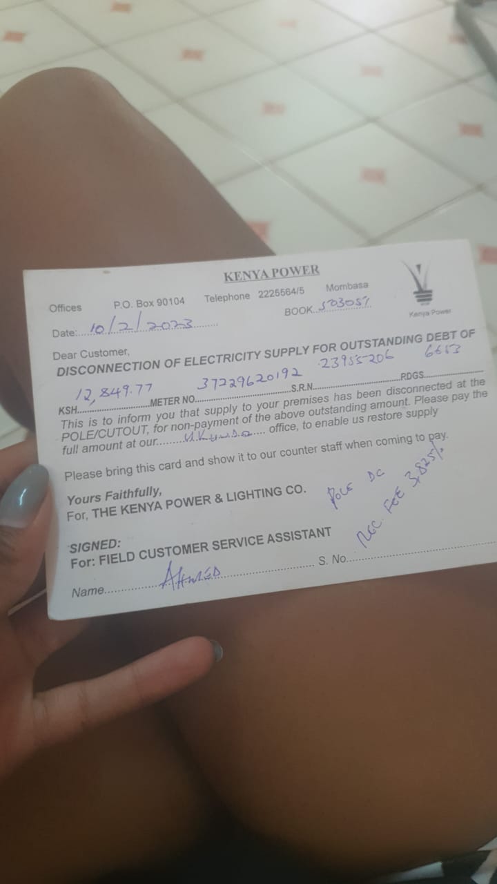 According to the victim, the alleged bill of Ksh12,849 was erroneous and the due date for disconnection was not until February 23rd, 2023. Despite her attempts to clear the matter with Kenya Power’s offices in Mombasa, the victim claims that her efforts have been in vain.