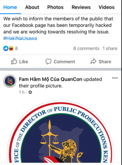 On Tuesday, November 24, 2021, the Office of the Director of Public Prosecution’s (ODPP) official Facebook account was hacked.