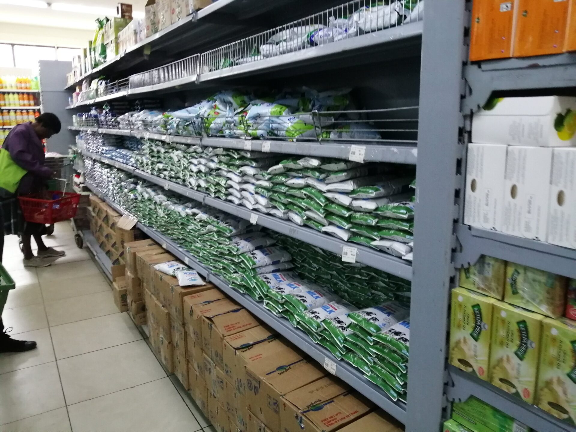 Shelf at Tuskys Supermarket, Buruburu branch.