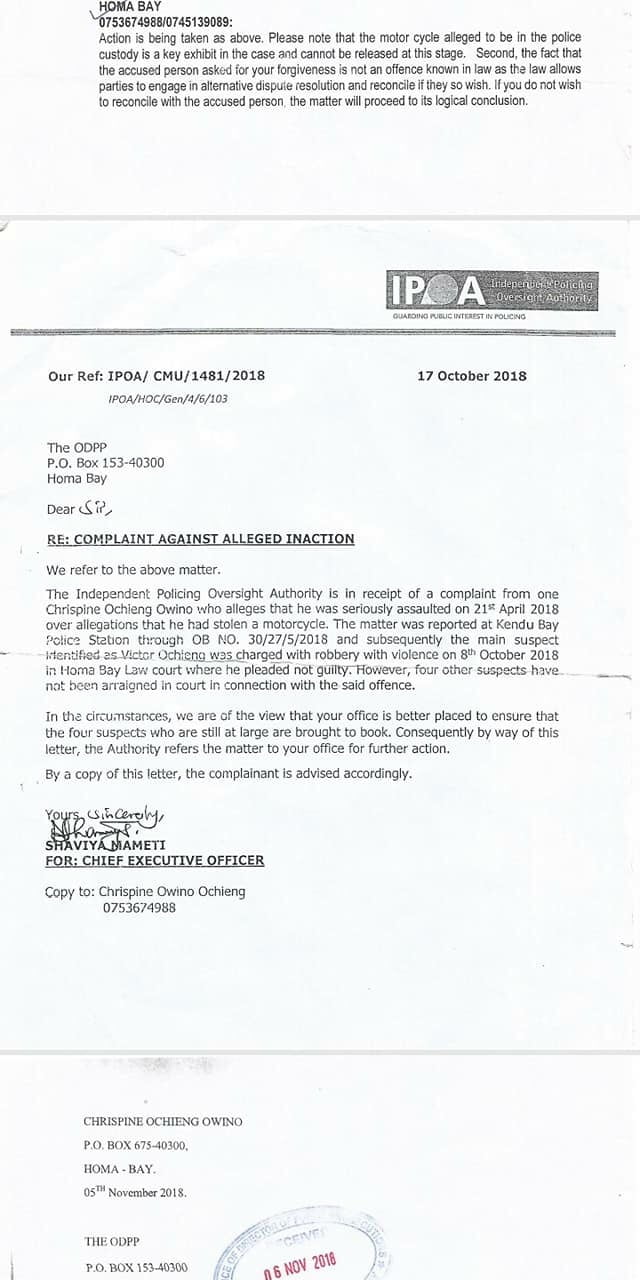 4. Letter by County DPP, his complain & Request letters & letter by IPOA and his photos after the attack.