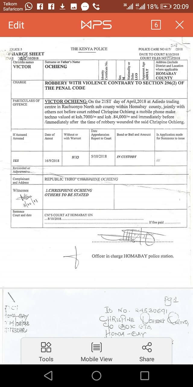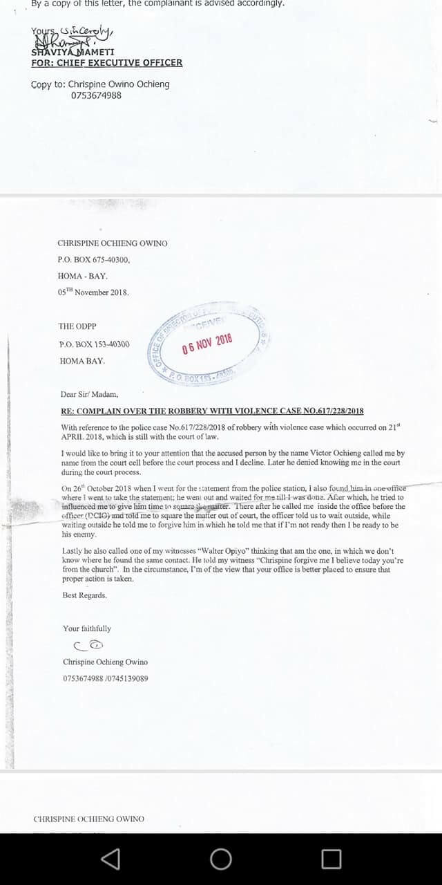 What has prompted me to write this is to notify the public of INACTIVITY of the police department in Homabay. They have blatantly REFUSED to arrest and produce one of their own, Mr Victor Ochieng, to face justice and instead resorted to intimidation and threats to the victim. Is the police protecting criminals within their ranks?